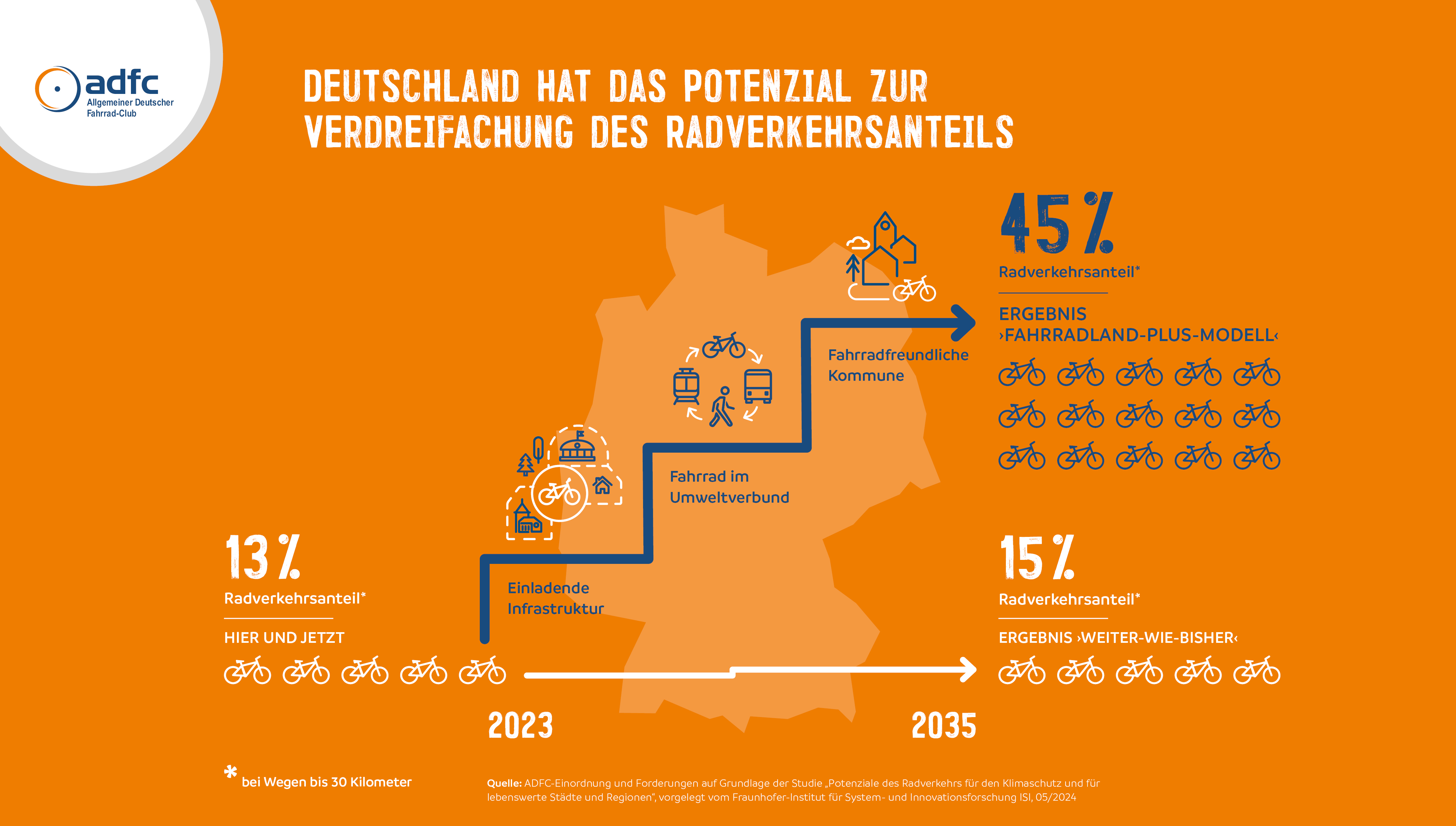 ADFC-Infografik: Deutschland könnte den Radverkehr verdreifachen © ADFC
